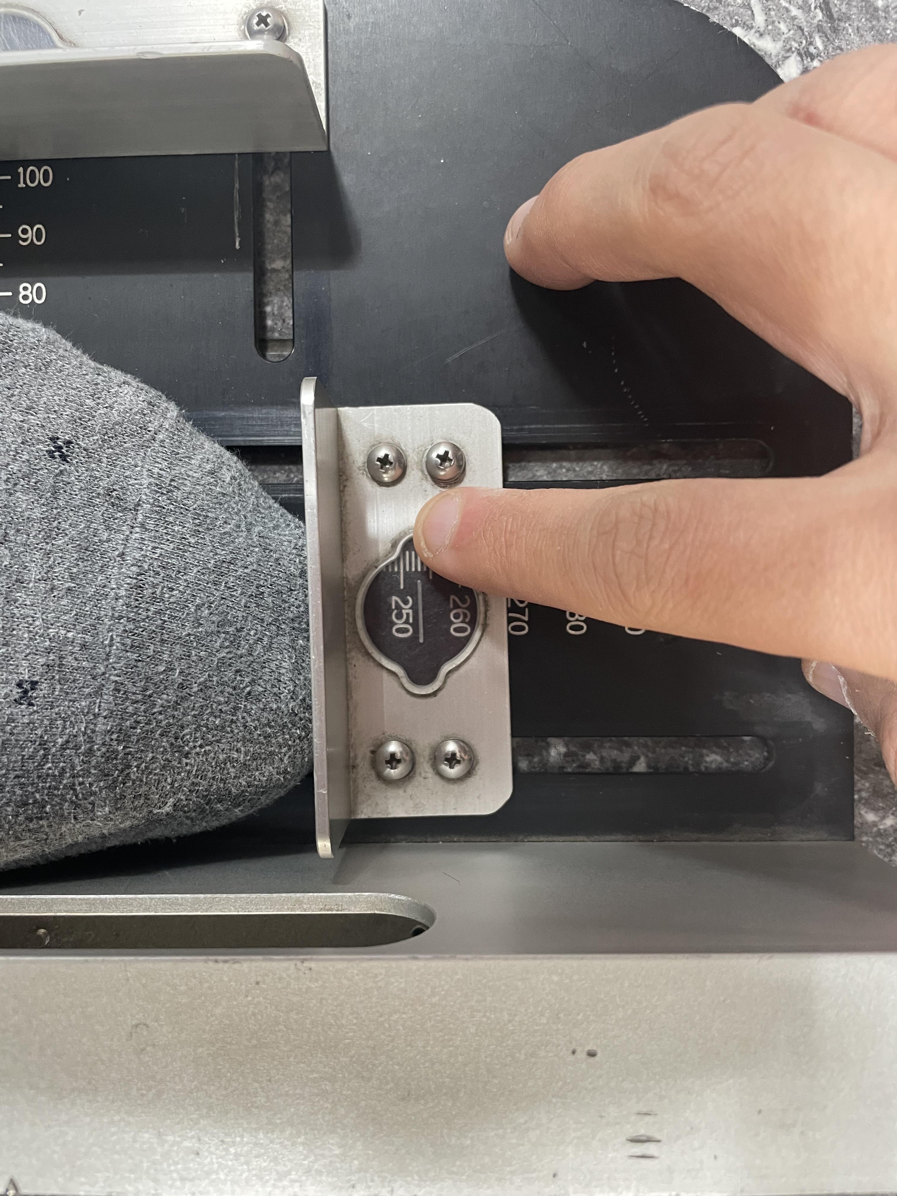 발 사이즈를 측정하는 기구를 가져와서 전체적인 발사이즈를 측정해주시고