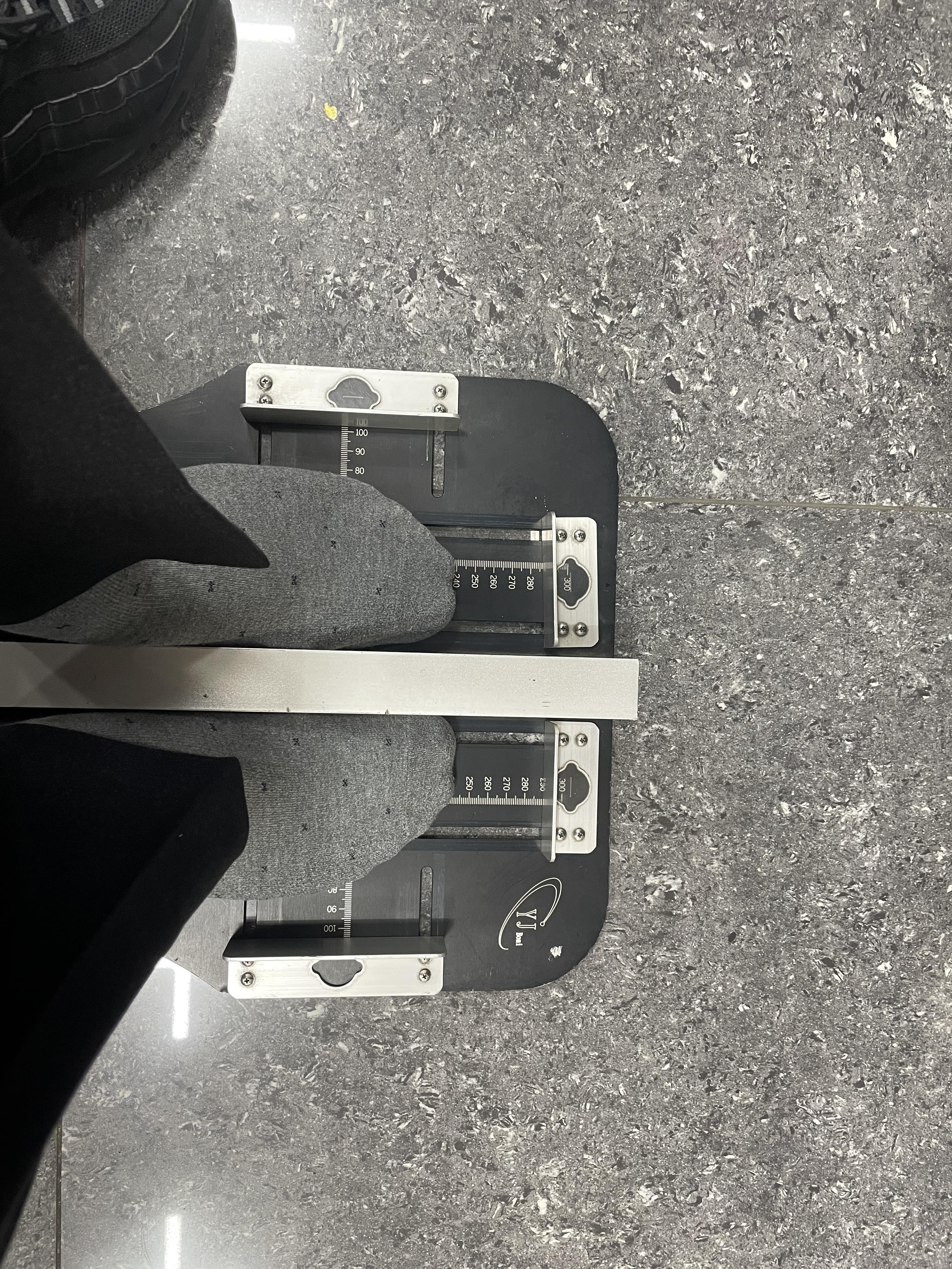 발 사이즈를 측정하는 기구를 가져와서 전체적인 발사이즈를 측정해주시고