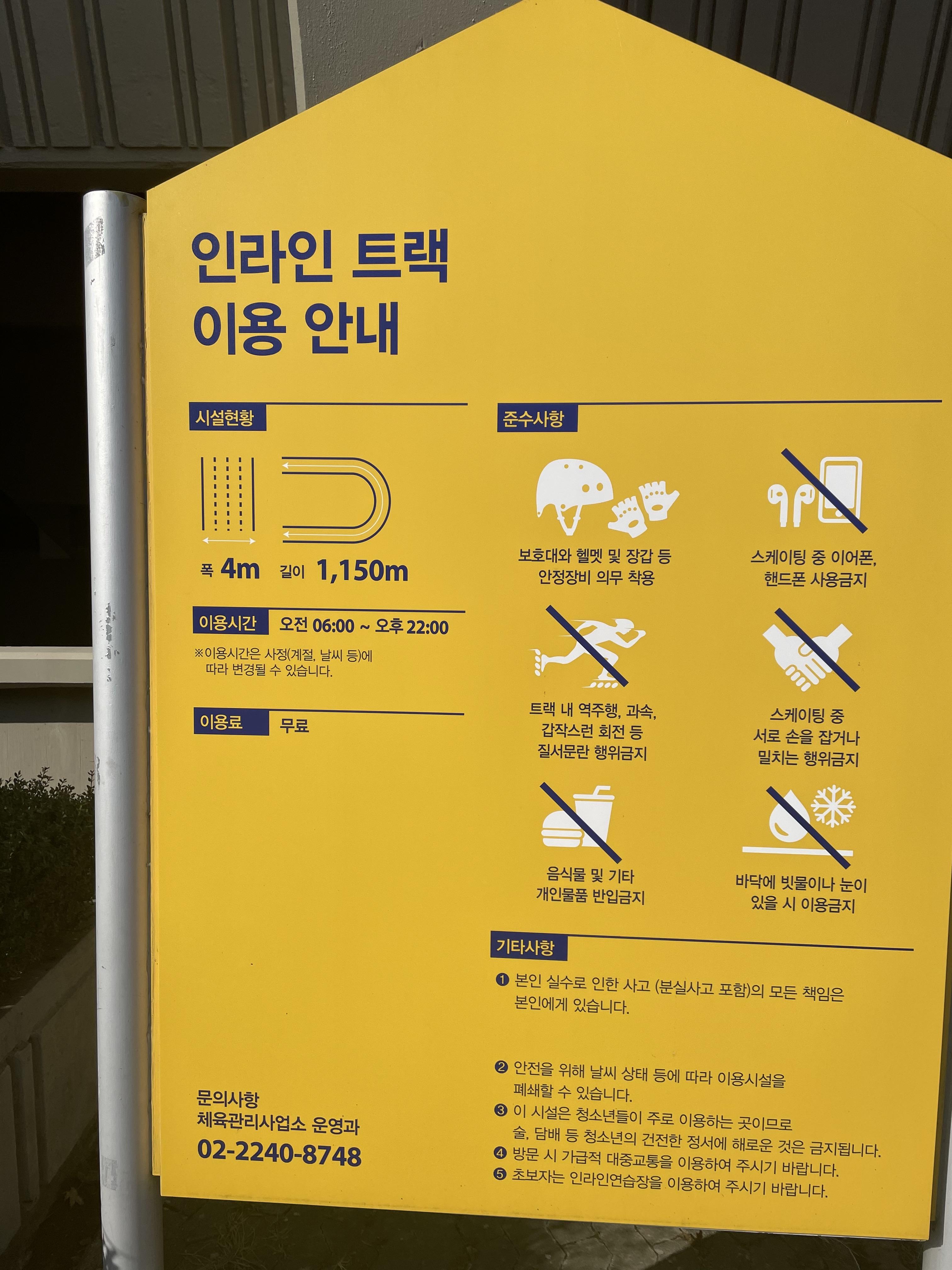물론 집앞 공원도 좋을것 같기는 한데 여긴 인라인 전용 연습장이니 다른 유해시설 및 자전거 보드도 없고 좋은거 같습니다.
