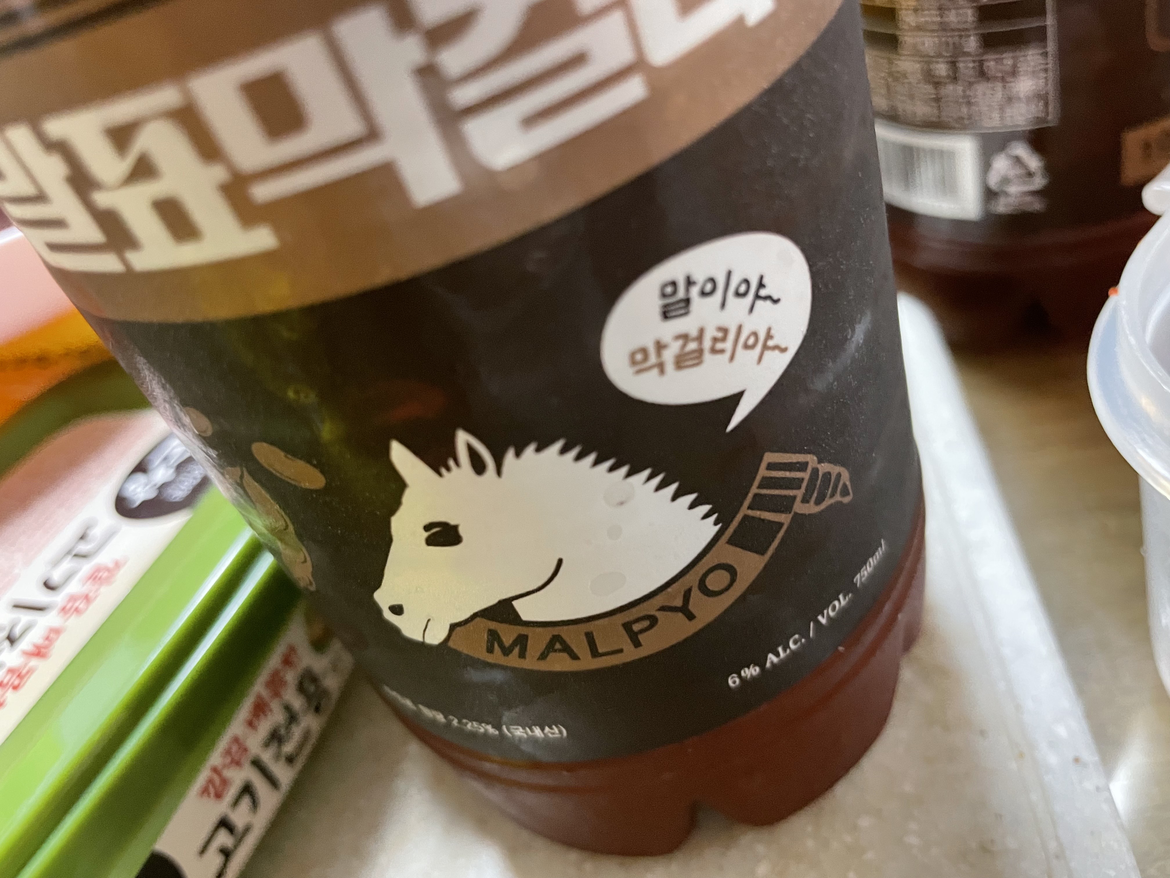 아무튼 검정콩으로 만든 말표막걸리, 희안하죠. 검정콩이라 ㅎㅎ 국내산 2.25%가 함유되어 있다고 합니다.